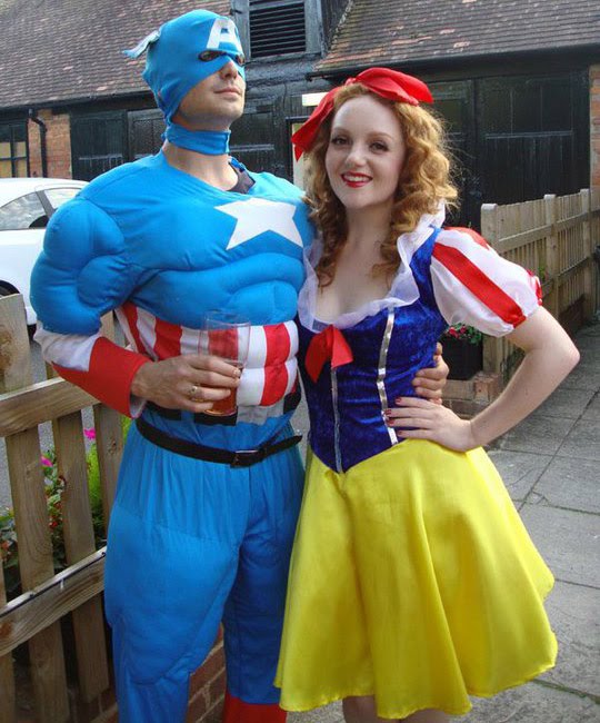 Then a group of our friends all went out for my boyfriend’s fancy dress birthday party. The theme was Cartoons & Superheroes, and everyone made such a huge effort, it was hilarious! π We had Caption America, Danger Mouse, Mario, Batman, Robin, Joker, Poison Ivy, Mr Incredible, Cheetara from Thundercats, Wonder Woman, Lara Croft & Minnie Mouse. I wanted to be Pikachu from Pokemon but couldn’t get my outfit so went as Snow White. I like dressing up a lot, last time was for a Mad Hatter’s Tea Party and I went as the crazy March Hare…