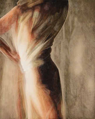 Mike always starts with photographs taken by himself as part of the creative process, and then for the painting, uses indian ink underpainting with washes of egg tempera on gessoed wood; a technique devised with the 13th and 14th Century. The painting is then digitized, brought into the 21st Century, and merged with elements of the initial photograph. I love the way he illuminates the canvas with flowing colours, sheer textures and glowing light.