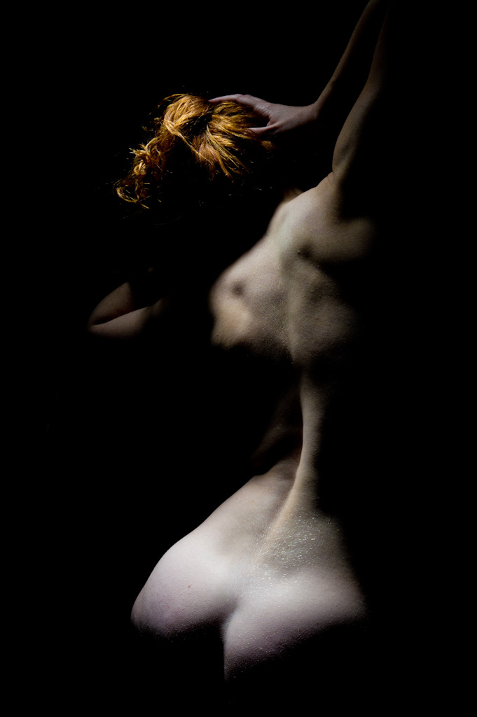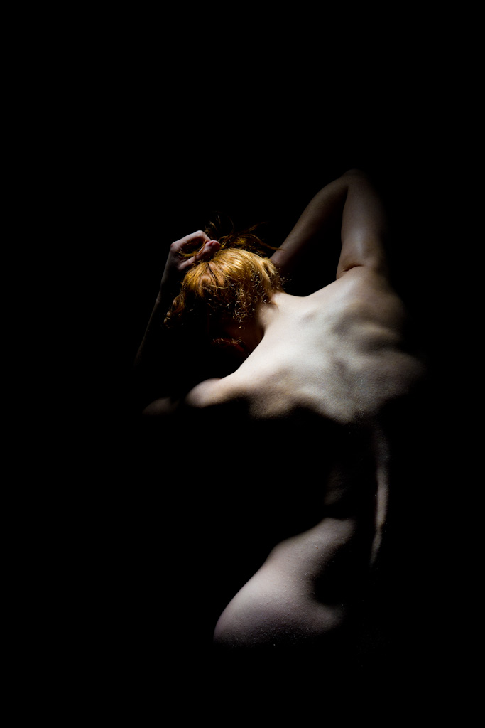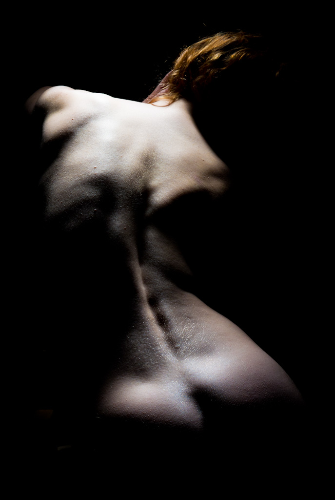 It’s so cool how a change in lighting can make such a difference. We saw what an interesting effect it had and all I had to do was keep wiggling around, letting it hit and miss me at varying angles. The stark deep shadows and selected harsh highlights make the images almost abstract, like strange and wonderful ornaments, so elegant and intriguing. I love how it shows the texture of the skin and all the lumps and bumps and dents in places I didn’t even know I had them. Less so the usual ‘a celebration of the beauty of the female back’ – these are more just an awesome capture of the curious structure, strength and mortal organicness of the human being. Equally as beautiful and incredible to look at as a softer, more glossy style. A work of art!