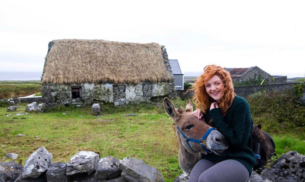 The forecast for the days wasn’t looking that great, and considering what a bone-chilling endurance my last 2 day nude location shoot with Eamonn was, I was a little apprehensive about modelling on this minimal landscape!! But thankfully the weather was mild albeit a little windy at times ๐ We also very luckily managed to borrow an old banger of a car since somebody can’t ride a bike (*blush*), so that helped us get around the island and was especially appreciated on the early morning shoots! We met lots of animals – horses, ponies, goats, fat furry caterpillars and a huge, mean-looking cow! This is an out-take from a set with me wearing one of the traditional Aran sweaters. That donkey was posing nicely nearby and then suddenly he had his head right in my lap! Talk about hogging the camera! ๐